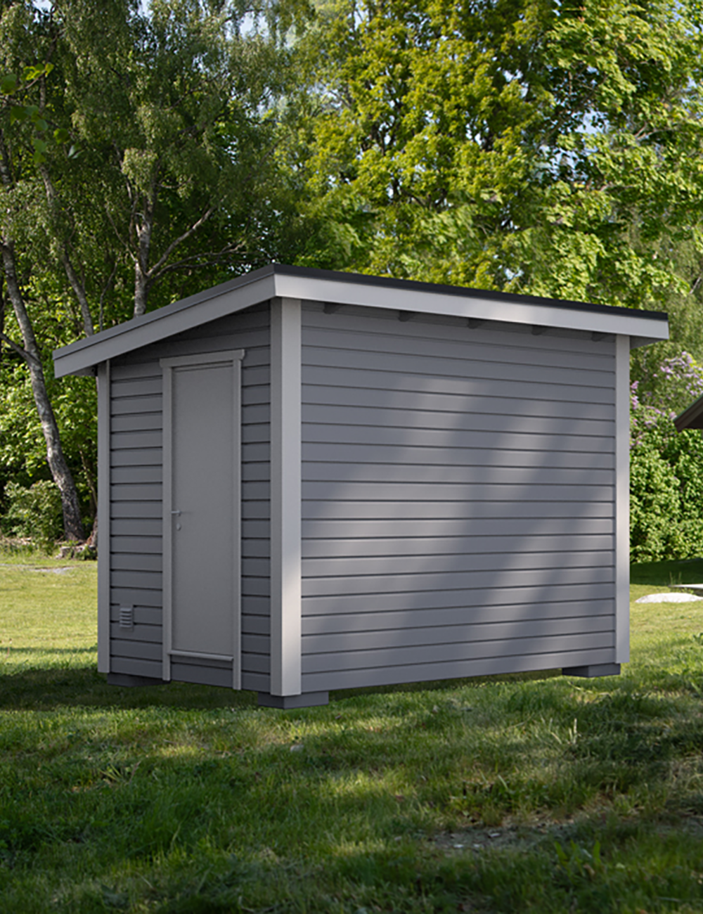 Den brandklassade teknikboden är byggd enligt EI60-standard och uppfyller de strikta brandsäkerhetskrav som gäller för energilagring med batterier. Boden är 7,5 m² och klassas som en friggebod – ett bygglovsfritt komplementhus som kan placeras på befintlig fastighet.
