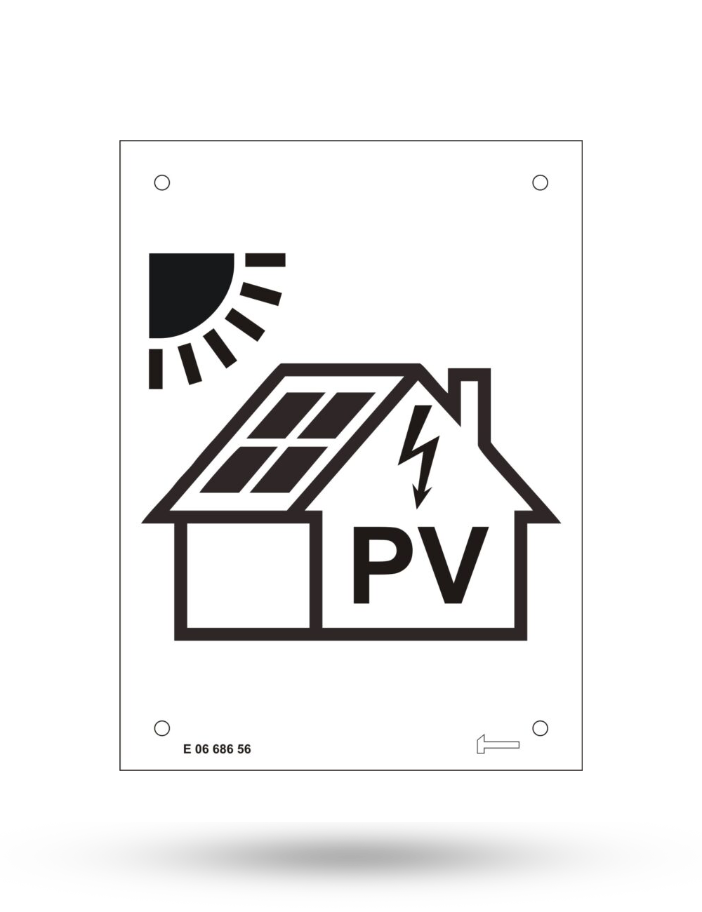 Varning- och informationsskylt för solcellsanläggningar med hål för montage.