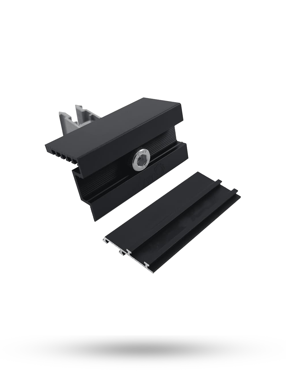 Komplett ändklämma med clips för montage av solcellspaneler.