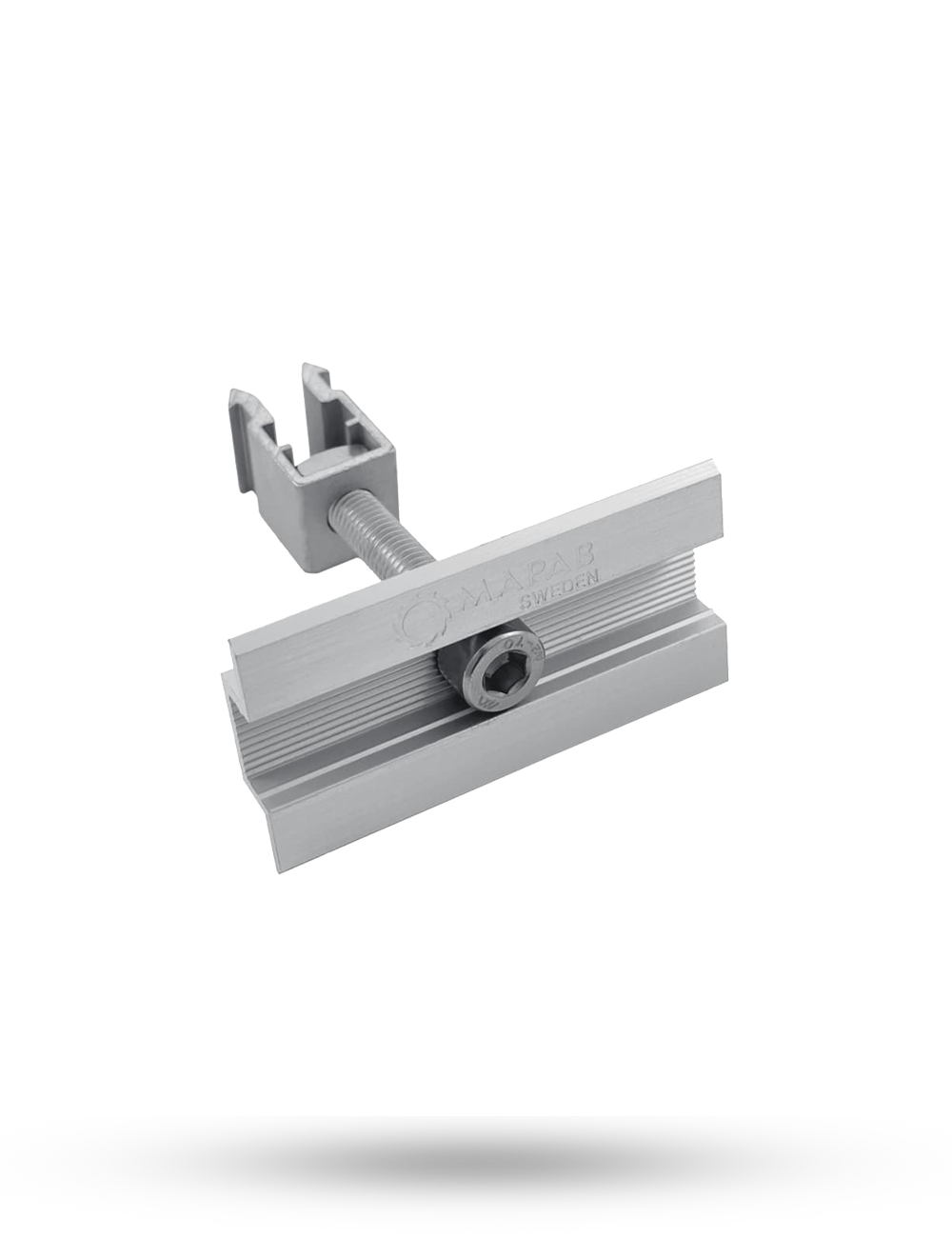 Komplett mittklämma med clips för montage av solcellspaneler.