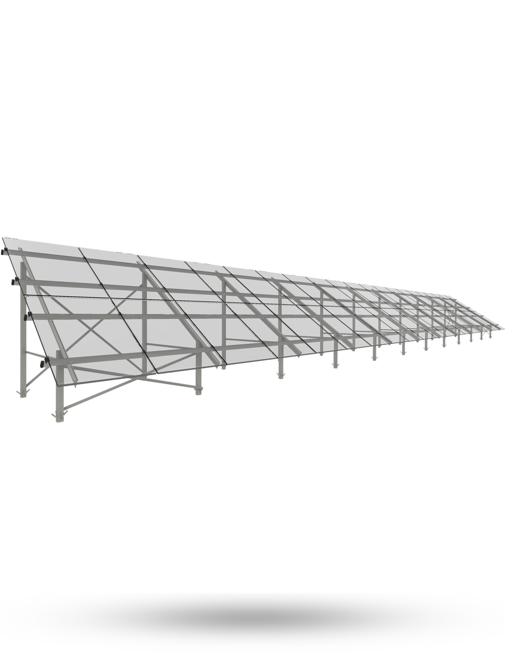 SunPark Rot är ett komplett och robust markmonteringspaket. Två panelrader i stående format.