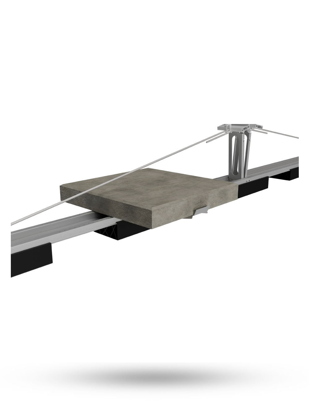 Placeras direkt på stativskenan för att skapa en bredare och stabilare yta för ballast. Perfekt när endast några få ballaststenar behövs och ballastskenan blir överflödig.