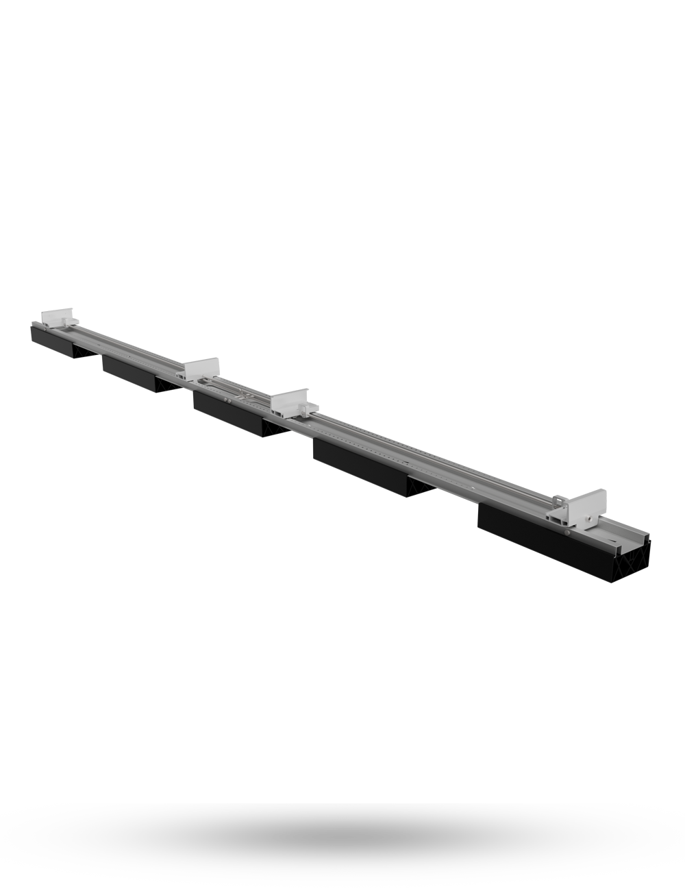 Den låga bygghöjden och effektiva layouten gör systemet perfekt för större tak. Varje stativ har en inbyggd skarv som gör det enkelt att koppla ihop flera sektioner – helt utan extra verktyg eller delar.