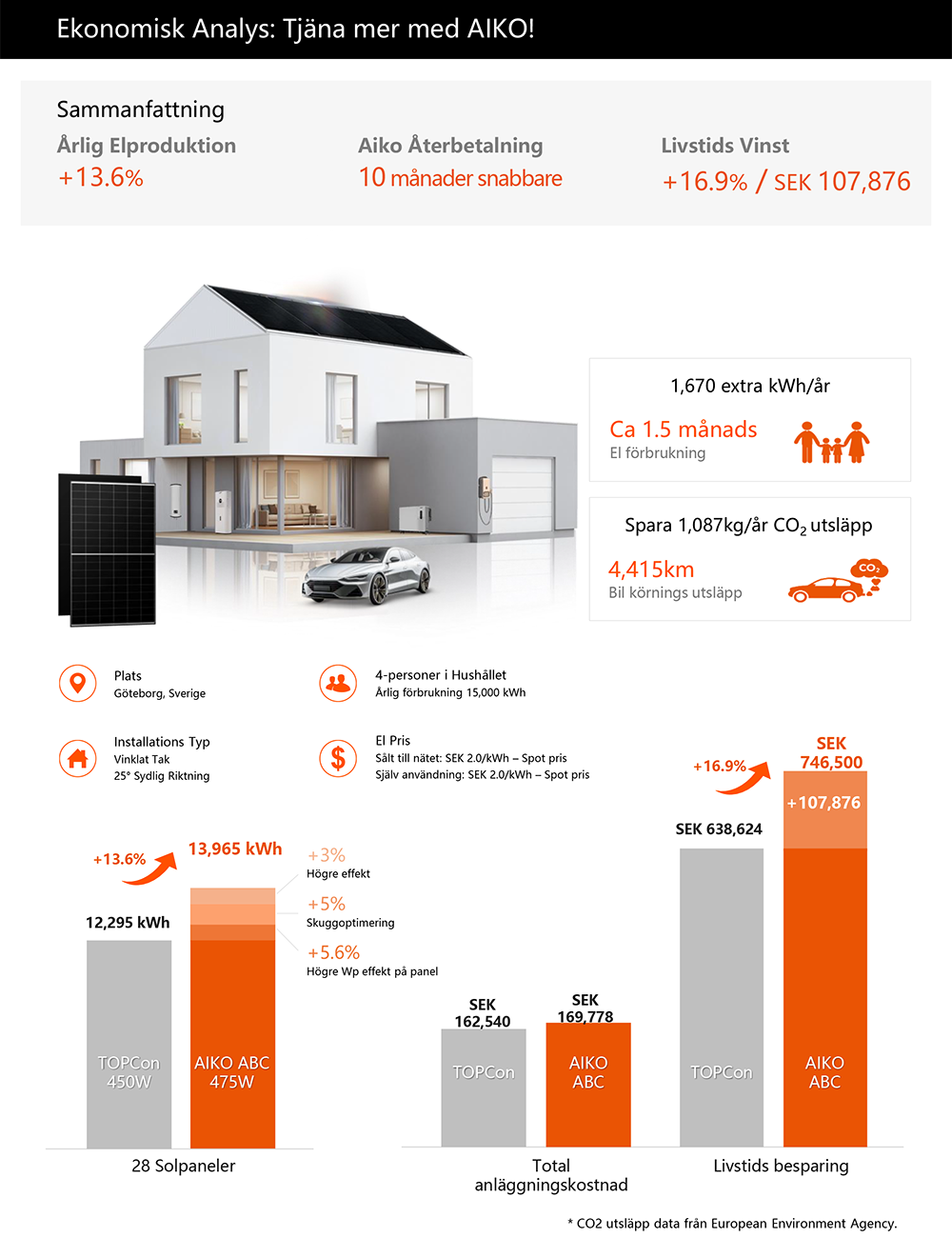 När du väljer solpaneler från AIKO väljer du ett företag som rankas bland de 15 % mest hållbara i världen. AIKO har tilldelats EcoVadis silvermedalj 2025 för sitt arbete med miljö, etik och socialt ansvar – en trygghet för dig som vill investera i solenergi med omtanke om både framtid och planet.
