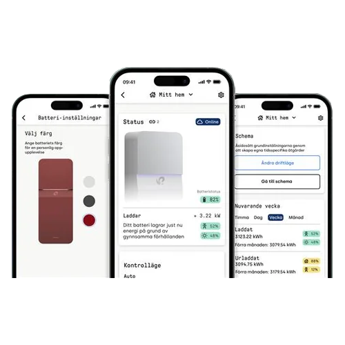 Med den nya appen får du ett användarvänligt gränssnitt där du enkelt kan följa och optimera din elanvändning, styra batteriet i realtid och kapa kostsamma effekttoppar. Batterisystemet integreras sömlöst i hemmet och anpassar laddning och urladdning efter dina behov – helt automatiskt.